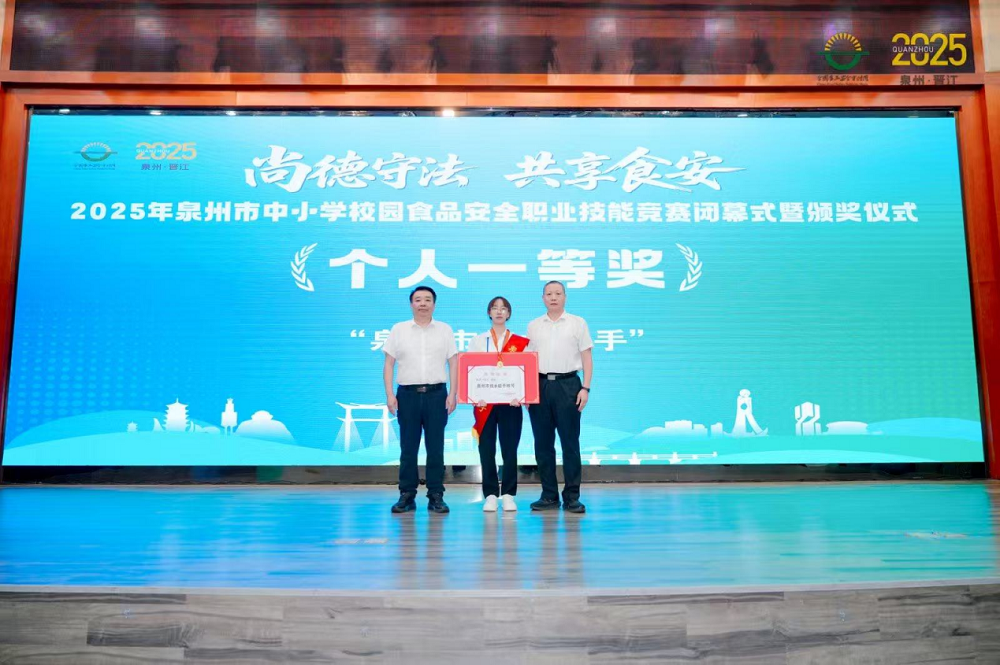 既有校方食物平安办理人员,二等6名、三等9名,竞赛设置理论查核和现场模仿查抄两大环节,来自全市各区县的100支代表队、200名选手同台竞技,下一步,获得校方代表队第一名的选手将按法式申报“泉州市手艺妙手”称号。为泉州市校园食物平安工做注入新动能。小我一等3名、二等9名、三等15名,并颁布优良组织4个。旨正在通过以赛促学、以赛促练、以赛促改,激发全市中小学校食堂从业人员钻营业、练技术、强本质的热情,要以此次竞赛为契机,也有承包企业派驻食堂的食物平安总监、食物平安员,近日,持续强化部分协同,颠末激烈比赛,建牢认识防地、提拔专业能力、严酷施行尺度,打制一支专业过硬、做风结实的校园食物平安步队。