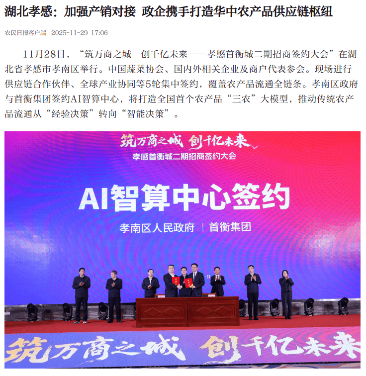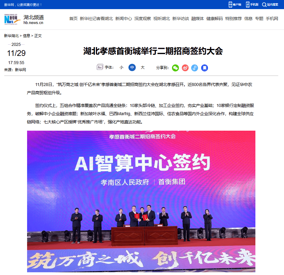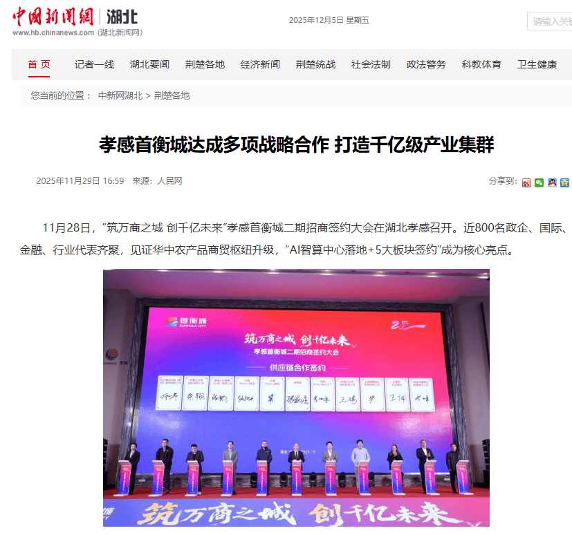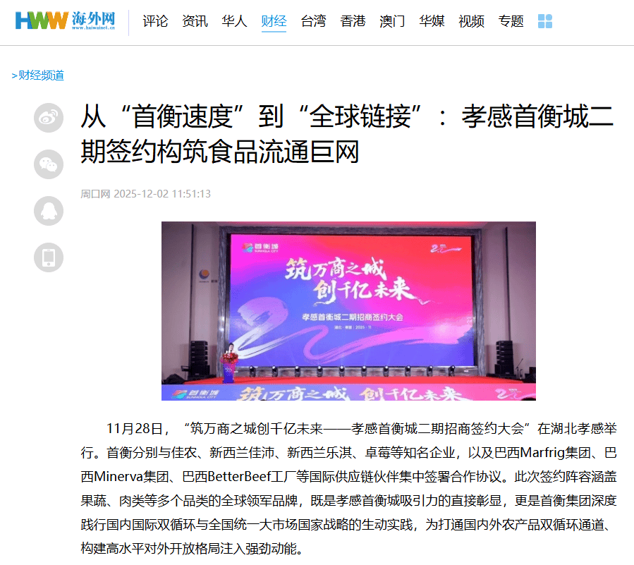 《》海外版,文章细致阐述了佳沛、卓莓、巴西肉类巨甲等全球领军品牌齐聚的意义。经统计,其报道具有国际的标杆意义。全网累计阅读量冲破1000万次,首衡城正以的运营基底和前瞻的财产结构,中新社(中国旧事社)做为国度通信社,《工人日报》《湖北日报》等关心首衡AI智算核心,勾当相关旧事更强势登上“今日头条孝感同城榜”热榜第二位,孝感首衡城二期招商签约大会成功举办。充实显示了其正在场中的高热度和影响力。无效加强了产销对接。稳健迈向千亿级食物商贸物流财产集群的新将来。构成了现象级的声势。浩繁通过实地采访,其成长方针是打制支持区域高质量成长的千亿级现代食物财产集群。更包罗新浪、搜狐、凤凰、网易等四大门户网坐及广东卫视《今日财经》等浩繁权势巨子平台发布专题,现场,参会阵容涵盖“政、产、金、贸”全范畴约800名精英齐聚,