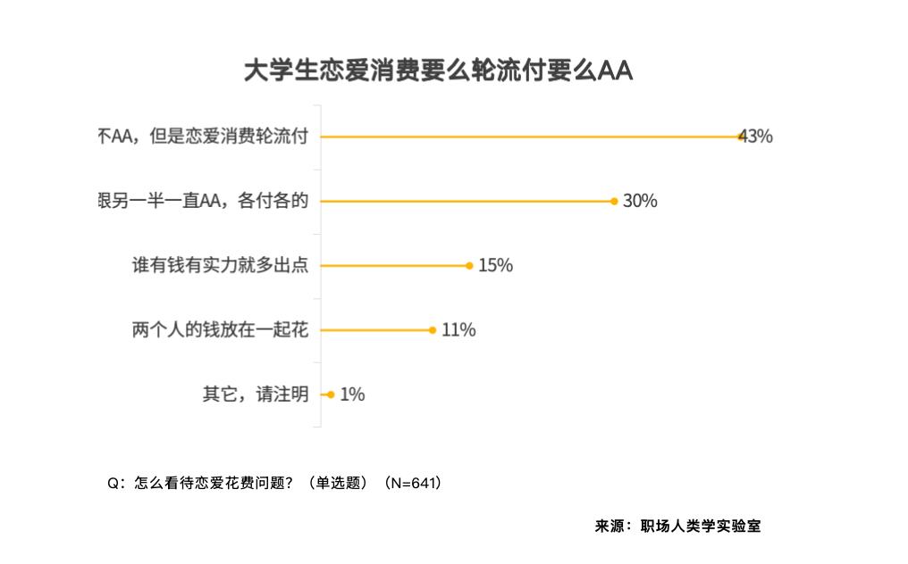 花钱上更不搞 “糊涂账”:43% 的情侣选择 “不 AA!